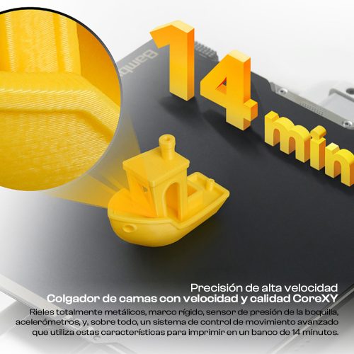 • Conectividad por Wi-Fi y LAN, control remoto y supervisión con Bambu Studio o la app móvil.