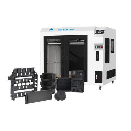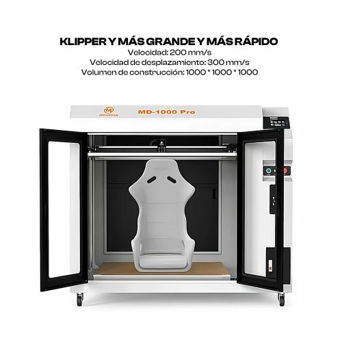 La MD-1000 Pro es una impresora 3D industrial de gran formato (volumen de impresión de 1000 × 1000 × 1000 mm) que permite producir piezas de gran escala en una sola pieza, con soporte para materiales de ingeniería gracias a su extrusor de hasta 350 °C y cama caliente de alto rendimiento.