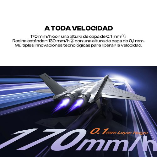 – Con resina “high-speed”: hasta ~170 mm/h a 0.1 mm de capa.