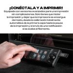• Compatibilidad con gran variedad de materiales: Gracias a la cámara cerrada y buen control térmico, la impresora está preparada para materiales más exigentes que una impresora abierta típica.