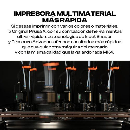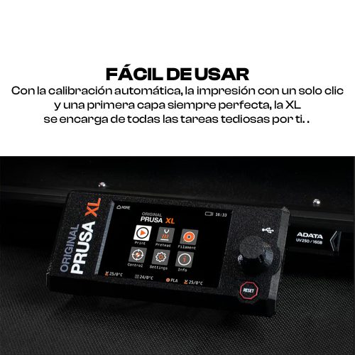 La Original Prusa XL es la impresora 3D más innovadora del mercado, ofreciendo posibilidades que ninguna impresora multimaterial de una sola boquilla puede replicar. Con un cambiador de herramientas de cinco cabezales de última generación, máxima calidad de impresión, precisión extrema, enorme volumen de impresión e impresión sin residuos, la Original Prusa XL establece una nueva categoría por sí misma.